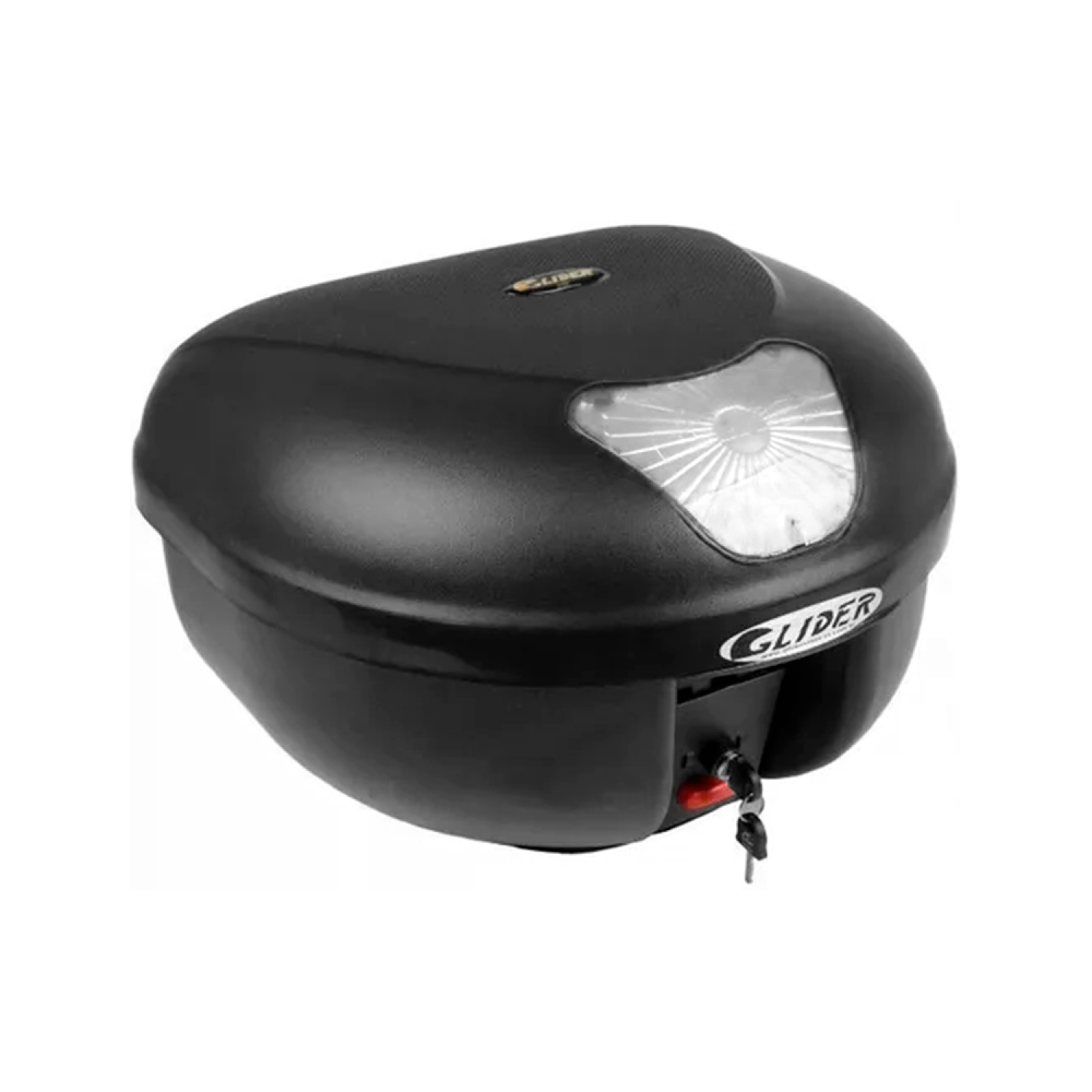 Fabricado no Brasil, o baú Glider é produzido em copolímero de alta resistência a impactos e suas lentes são produzidas em policarbonato.