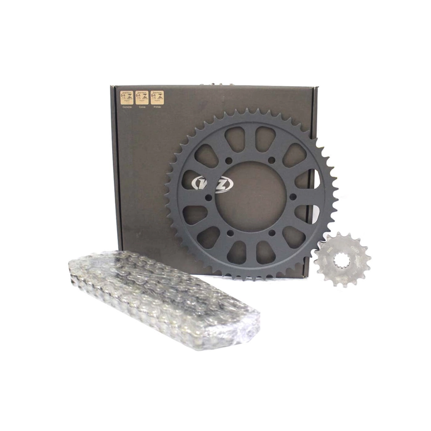 Kit XTreme Black Edition com powder coat black, oferecendo um acabamento perfeito e maior durabilidade anticorrosiva. Qualidade de peça original das montadoras, em peças de reposição. Correntes com retentores O-ring maior durabilidade e qualidade.Pinhão carbonitretado resfriado por nitrogênio líquido.